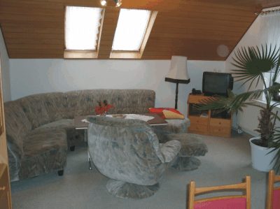 Die Sitzgruppe des Wohnzimmers ist ein gemütlicher geräumiger Platz zum Entspannen oder Fersehen.