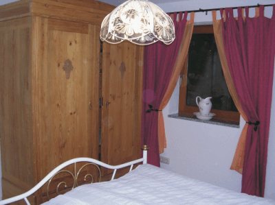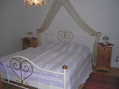 Im Schlafzimmer befinden sich ein gemütliches Doppelbett für 2 Personen, 2 Nachttische und ein großer rustikaler Kleiderschrank